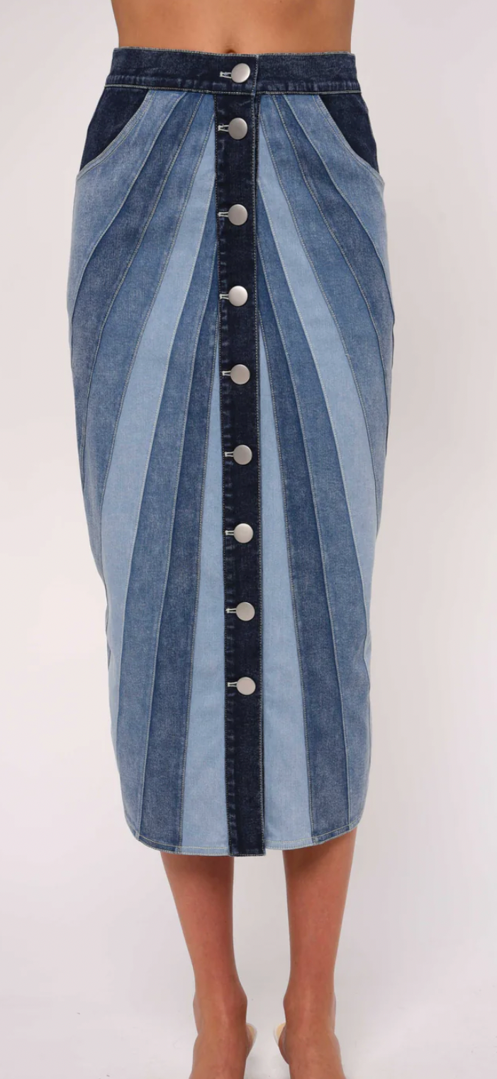 Apolline Midi Skirt, Paneled Denim