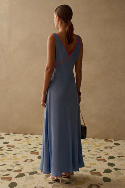 A delicately feminine dress that is both timeless and bold. Our Madeleine Dress is cut on the bias for a beautiful, figure-hugging silhouette that will never go out of style. The pop of colour adds a fun and exciting twist to such a classic cut.